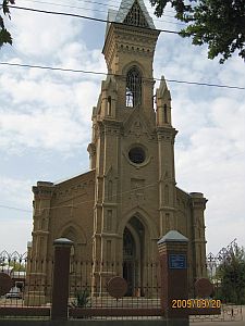 通りを少し歩くとカトリックの教会があり、入り口の近くにいたおじさんに中に入ってもいいかと聞いたら「いいよ」というので中に入り写真を撮った。教会の中には誰もおらず私たちだけだった。そしてもう少し先へ行くと今度はロシア正教会の教会があり、ここにも入った。ここには何人かの信者や、ローソクやイコンなどを売っているおばさんがいた。写真を撮る許可を得て、写真を撮ったあと、旅の無事と日本とウズベキスタンの友好を祈って大きいローソク(大600スム=36円、小300スム=18円)を一人ずつ買って供えた。