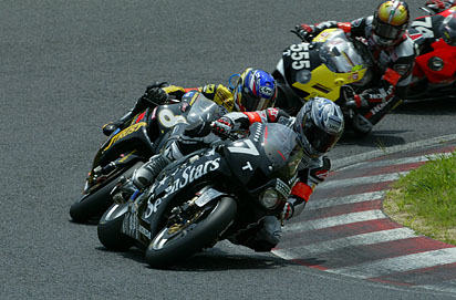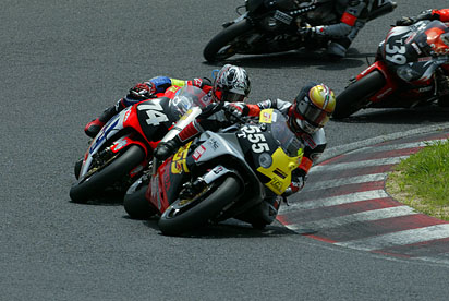 さらに渡辺(12)もコースオフし炎上した。転倒車はさらに山口(555)、
