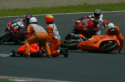 リッツァ(48)はハイサイドを起こしライダーは頭からコースへ落ちた。その