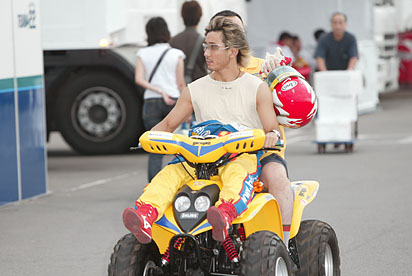 バイクに乗って颯爽と走り去る脇阪 寿一。