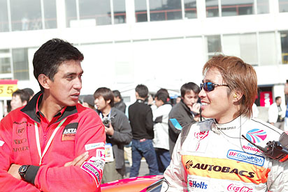 今度はGT-500クラス。グリッドにマシンを止めるや、SARDのマシンにやっ
