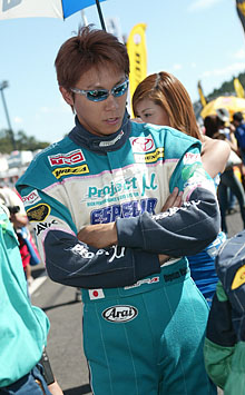 そこに現れた飯田 章。お互いスターティングドライバー同士頑張ろうと