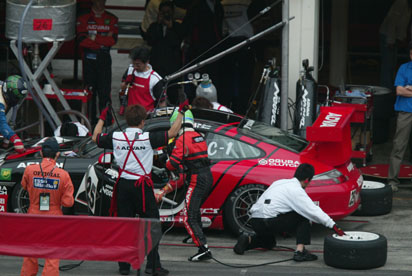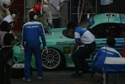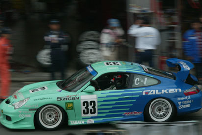 121周最後のピットインとなったFALKEN☆PORCSHE。このまま走行を