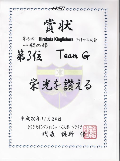| '08.11.24 | 第5回枚方キングフィッシャーズカップ | 3位 | 大会初出場で見事3位! 勝ち点0での3位は伊達やない(^^;; |