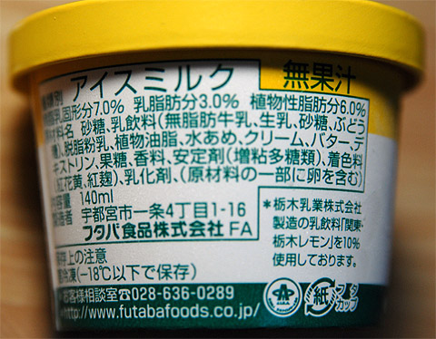 製造元:フタバ食品 フタバのレモン牛乳アイスにカップアイスが登場。 本物のレモン牛乳を使用して、パッケージも今までの「なんとなく似ている」ものから 関東・栃木レモン準拠のものになっている。