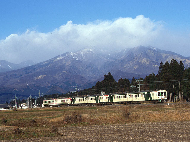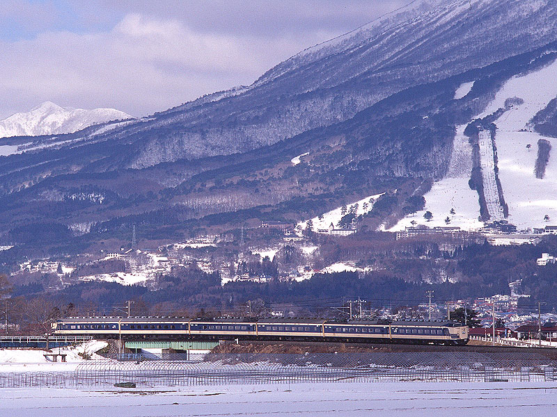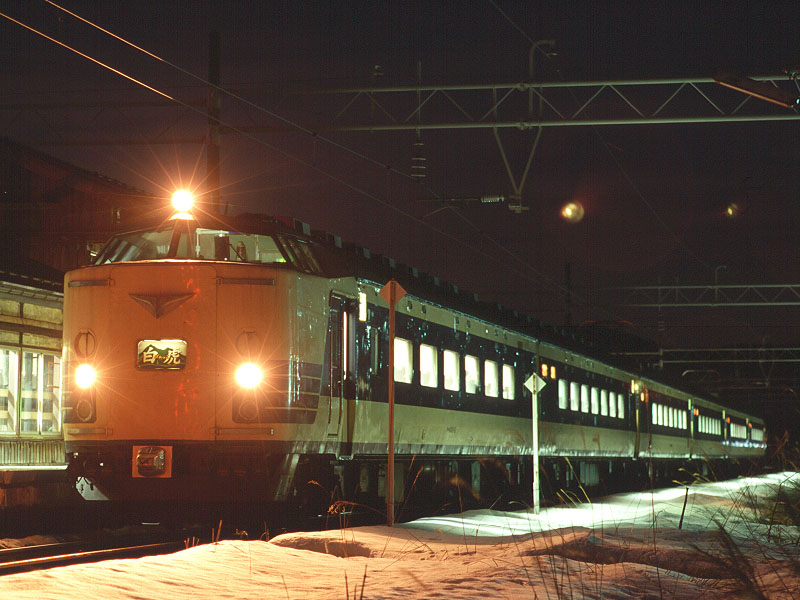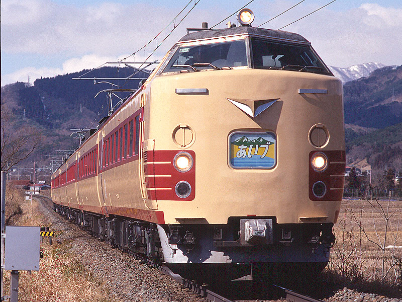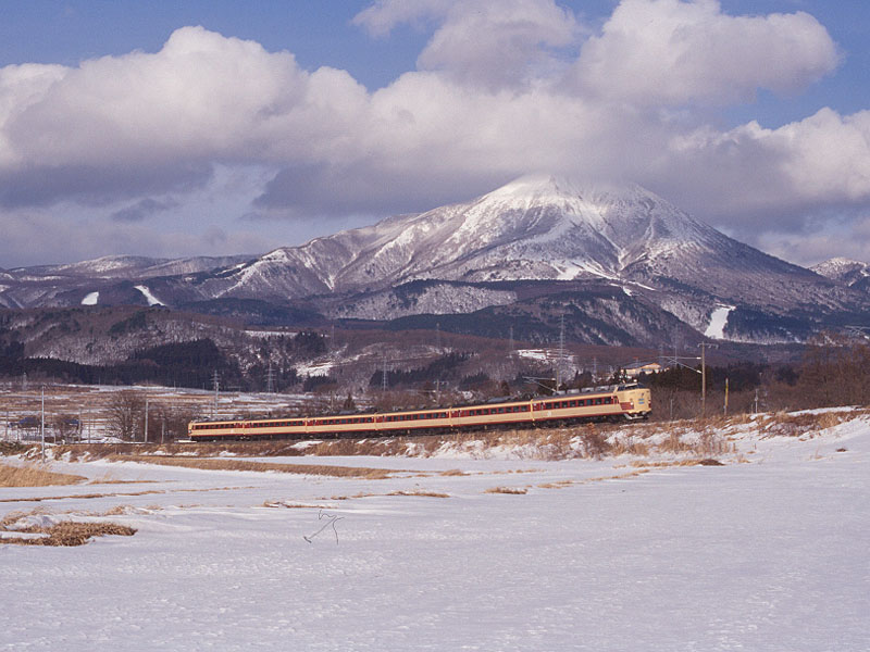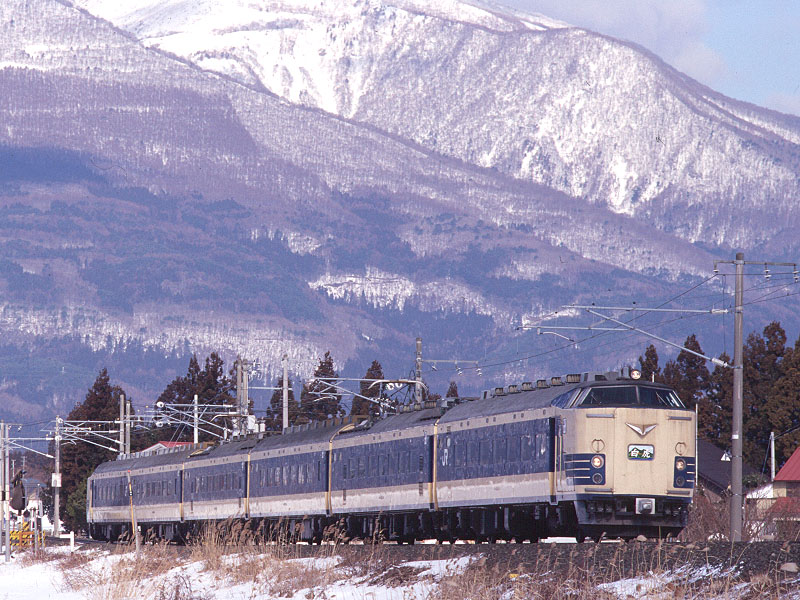 583系「白虎」と国鉄色「あいづ」(撮影:03年2月)