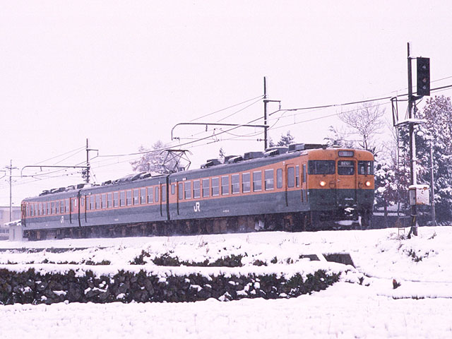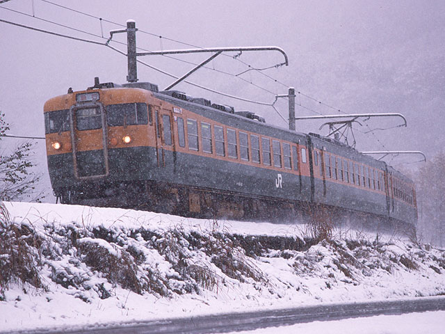 冬の臨時列車として快速「白虎」が運転され、磐西の雪景色の中を583系が走行しました。