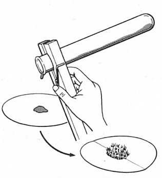 硫黄は加熱中によく発火するが、試験管をぬれぞうきんで覆えば火は消える。