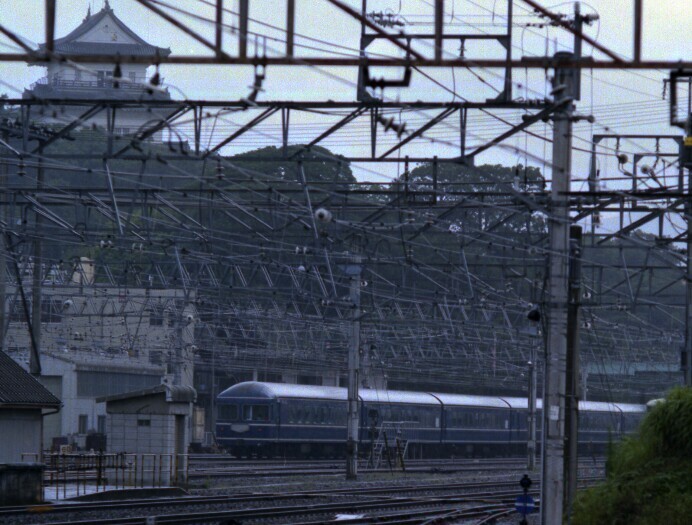 昭和53年、小田原城をバックに昼間東海道を下る20系の回送。