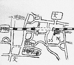 - 遊具のあるところ、四角い広場、木がたくさん植えてある場所、と3