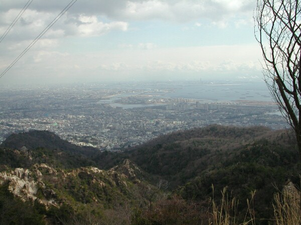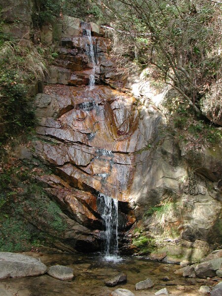 六甲山ハイキング 2002.2.10撮影 左が高座の滝。手前には売店がある。 ここの直前までは車が入る。滝の前を 左折するといきなり岩の狭い道になる。 高座の滝。小さな滝である。
