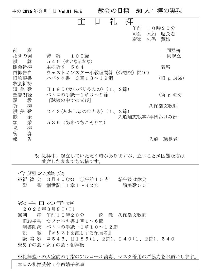 −2026年3月1日の礼拝−