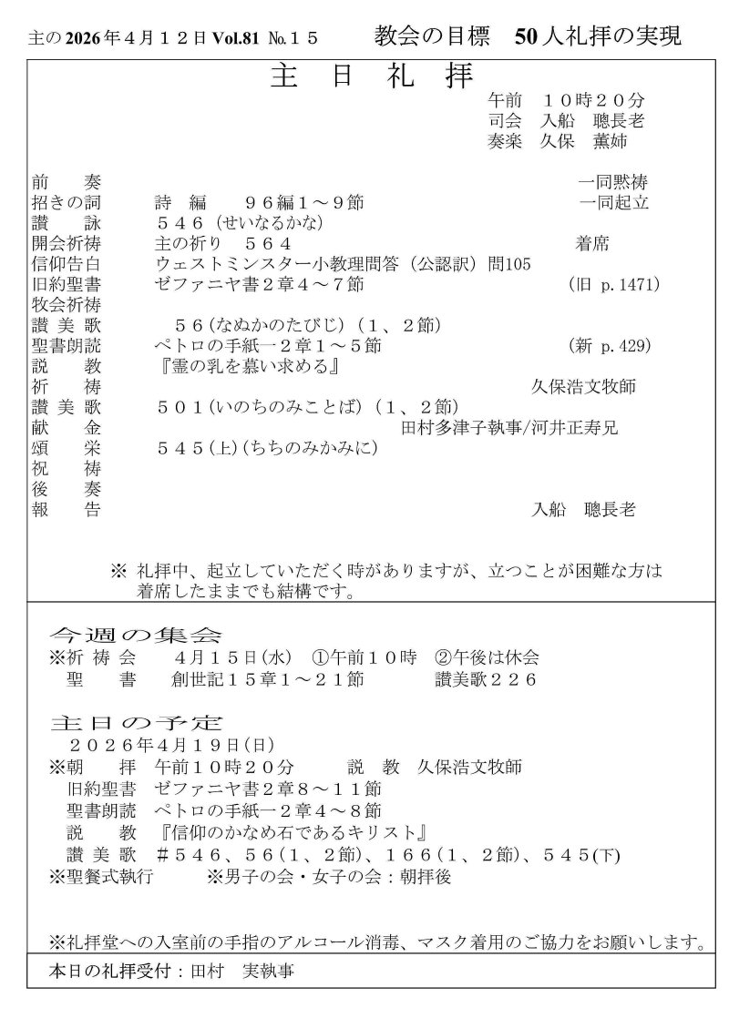 −2026年4月12日の礼拝−