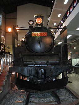 | ホームのような雰囲気の見学通路、9850のキャブ・・運転台は解放され乗って観察する事が出来ますがC57は通常閉鎖されていました、何かの記念行事時には見ることが出来たのかも知れません。 余談ですが9850マレー機関車はその構造が解るようにカットモデルになっています、この機関車は昭和初期に東京駅北側のガード下に有った鉄道博物館の時代から展示されていたとの事ですが、カット工事を行った工場から博物館の側までこの状態で線路上を走って運ばれたとか・・もちろん自走は出来ませんので他の機関車に牽引されてきたのですが途中の駅や踏切などでこの機関車を見た人の目にはどの様に映ったのでしょうね・・。 |