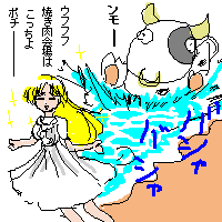 1月6日(火) 本日のコント♪ A「ねえちゃん、初詣行かない?」 B「あ、私は初詣は年末に行くタイプだから」 A「…年末に行ったらそれ初詣じゃないんじゃん」 B「ばかねー、その年に初めて行くのが初詣なんだから、別に年末に行っても初詣でしょ?」 A「一応お正月中に行くのが初詣だって、辞書には」 B「うるさいわねー、私は神様になんか祈らなくても、自力で良い年を過ごして『今年も一年良い年でした』って報告するのが好きなタイプなのよ」 A「…ねえちゃんは神様キライなんだね」 B「何言ってるの、好きよ?好きだからこそ、いちいち余計な手間かけさせたくないんじゃない。わかる?」 A「分かるようでやっぱり分かんないなー」 …あ、絵が抜けた(汗)まあ、その、毎日は結構疲れるというかアレですので!(汗) という訳にも行かなさそうなので描いてみたよ。 ![]() 何だこりゃ。 |
