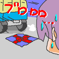 ![]() ![]() 本日のコント♪ ぽとり A「あ、今、プレゼントみたいな何かを落としましたよ〜…って!あ、あの人は隣のクラスの二枚目で有名な仁摩 名太郎くん!?」 キーンコーンカーンコーン A「う〜〜む…、結局渡しそびれて、今も手元にプレゼントを持ってる訳だけども…、一体全体どうしたものか?」 パターン1・普通に昼休みに落としたプレゼントを渡す A「あの、これ…!今朝、道に落としてましたよ?」 B「あ、ありがとう…!ずっと…、探していたんだ…!」 「ああっ!え、A子が二枚目くんにプレゼントを!?」 「ええっ!?…あ、あの二人ってもしかしてそうだったの!?」 ワイワイガヤガヤ! A「…〜って!うわー、うわあー!?辛抱耐え切れん!地味な女子学生にはまっことキツすぎる展開ですわい!?」 私はただ、ひたすらに穏やかで平凡な日常生活を送りたいだけなのに! パターン2・自分でなく、人を介して渡して貰う 「あの、これ…!私でなく、私の友人が朝、貴方が落としたのを見かけたって…!」 B「ええっ!そ、そうなのかい?…でも、どうしてわざわざ友人越しに…」 「…これは私の個人的憶測ですけどね?…ズバリ!直接会って返すのが恥ずかし乙女だったからだと思われますよ!?」 B「ええっ!?…と、いう事はA子くんは、僕の事を…?」 ワイワイガヤガヤ! A「絶!悶死!?って!うやあ!うややあぁ〜〜!?駄目!ダメコレ!?パターン1の時と全く結果が変わってないし!」 ああ〜…!何かもう段々ハラが立ってきた…!こっちは親切で落し物を届けてやろうってのに、どうしてこうも苦労をしなけりゃいかんとすか!? A「…そうだ!何も私が届けなくても、今朝道に落ちてた所に、何事も無かったかのようにこっそり返しておけば良いじゃないの!」 そうだそうだ!うん、何も難しい事なんて無かった! A「それじゃ早速、元あった道の真ん中に、プレゼントを置いて、と…。」 これで良し! ブッブー。 グシャリ。 A「あ」 ![]() その後、私は何も見なかった事にして帰宅。(待て) |