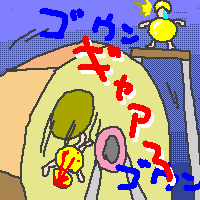 ![]() ![]() 本日のコント♪ A「何だかアスレチックみたいな巨大施設が立ち並んでる所に来ちゃったけど…、福引き会場って本当にここで合ってるのかなあ…」 B「はいはいはいはい、いらっしゃいませいらっしゃいませ〜!この世の今生の思い出に、福引き、あ、福引きアスレチックは如何ぁ〜ッスかあ〜!」 A「…福引きアスレチック?」 B「…ああっ!そこ、そこの貴方!?それ福引きの補助券ですねっ!しかも六枚!…はいはいは〜い!これで一回チャレンジ出来ますよう!良かったですね〜?嬉しいですね〜?…主に企画倒れの責任を取らなくても済みそうなこのボクが!」 A「ええと、それって一体どういう事ですか?」 B「ああ、はいはい!当福引き会場はですね〜、いわゆるガラガラと回して当たり玉を出す福引きとはちょぉーっと違っておりましてね?はい、コレ着て下さい。ハイ、これかぶって下さい!」 ![]() A「え?え、え??何ですかこの着ぐるみっぽいの!」 B「…お客様自らに福引きの玉になって頂きまして、この先のアスレチックを突破して頂くという趣向な訳ですよ〜」 A「え?これって最初からいきなり金の当たり玉状態じゃない?」 B「はいはい全くその通りですよ〜?その状態、無傷の金色のままでゴールしたお客様には、勿論文句なしの一等賞!仕掛けで血塗れの赤玉になっちゃったお客様には、残念賞のポケットティッシュ!」 A「ちょっと待った今血だるまとか言いましたか!?」 B「いやーハッハッハ大丈夫ですよう!少なくともこれまで重傷者はあっても死者は一人も出ていませんから」 A「それ何のフォローにもなってないよ!?ていうか命をかけて福引きをするって…!…ちなみに一等の商品は何?」 B「ええとですね…、それはもう超豪華!カップラーメン一週間分にチロルチョコまで付けちゃいます!」 A「その条件でこの競技に挑んだヤツが居る方が不思議だな!?」 |