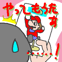 本日のコント♪ ![]() A「ねーねー、今度キノコ狩りに行くんだけどさ、食べられるキノコと毒キノコとを見分ける方法ってあるのかなあ?」 B「う〜ん…、見た目が派手なキノコは毒キノコだとか、縦に裂けるキノコは毒キノコだとかいう俗説はあるけど、素人がそんな手軽に見分ける方法なんて無かったような」 A「とりあえず、赤くて目玉の付いてる例のキノコが、巨大化キノコだっていう見分けだけは付くんだけどねー」 B「いやそんなスーパーなキノコは現実世界には無いからね!?…適当にキノコを狩った後、ちゃんとしたプロに見分けて貰うのがやっぱり確実だとは思うけれど」 A「アッ、そうだ!胃袋を物凄い鍛えて毒だろうと大丈夫な体になれば、いちいち毒とか見分けなくても平気な感じに」 B「いやそれどんなキノコ狩り対策の結論!?ていうか、そんな鍛えたって毒物はやっぱり毒物な訳で」 A「そうかなあ〜?致死量に足りない毒物でもって少しずつ体を慣らしていけば、確かある程度耐性が出来るってどこかの本に書かれてたような」 B「完全にインチキな訳でもないけど、実行したら物凄い危険だから止めましょうね!?」 |