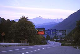 平湯温泉と安房トンネルとの分岐。後方に笠ヶ岳