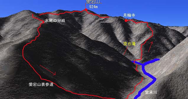 対地高度178mの清滝から見た愛宕山のイメージmap