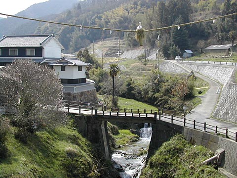 子孫繁栄と五穀豊穣を祈るとともに、悪疫などこの道と川を通って侵入するものを押しとめ、住民を守護するための神事といわれている。栢森大字の神事の特徴は、全体を仏式で行うことである。福石(陰物ともいう)と呼ばれる石の上に祭壇を設け、僧侶の法要の後、飛鳥川の上に陰物を形どった「女綱」を掛け渡す。一方、飛鳥川下流の稲淵大字の神事は神式で行うことが特徴で、「男綱」を飛鳥川に掛け渡しをする。』                          看板より転載