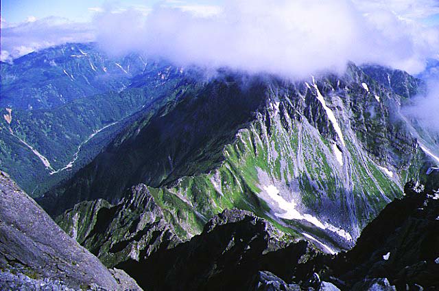 ど迫力満点な大キレット。ナイフリッジと云われるがごとくここを通過するにはそれなりの経験と体力がいる。