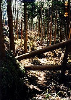 東海自然歩道の路も遮られ、大木を乗り越えるか潜らなければ進む事が出来ない。