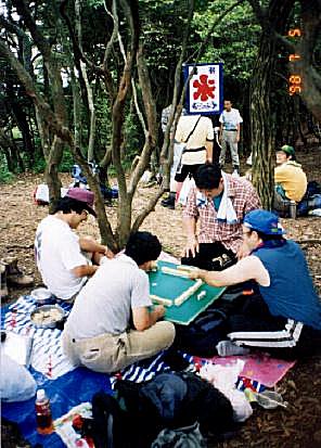 麻雀に熱中!右の人はわざわざ東京よりこの企画に参加。