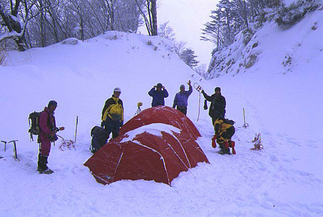 ビバークした登山口の峠。さあ〜これからテント撤収だ!この場面は1434pから降りてきた時の様子。