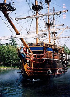 チボリ湖に浮かぶ帆船レストラン。夜は夜景を眺めながら楽しめるとか?