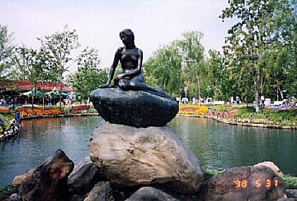 アルゼンチン童話の人魚姫が、色とりどりの花に囲まれてたたずむロマンティックな島。