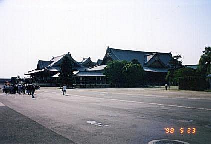 宗教都市天理教本部前の大広場 沢山の信者が全国から集まり、数日の泊まり込みによる奉仕活動に専念。 屋敷の中は一周できるようになっており、その中を両手両足にぞうきんを付け よつん這いになりながら奇麗に磨いていく。これは自分の心を磨くと云われ、 「してあげる」ではなく「させて頂く」の精神修行の一環。