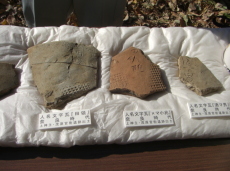 08-11-23 「上神主茂原官衛遺跡」(国指定)の今年度の発掘調査現地説明会が行われました。今年度の調査は最も大きい正倉瓦葺き建物跡で、その根石(柱の礎石下に突き固めた)が多数発掘、礎石は後代に遺失したらしい。 大勢の参加者と発掘された人名瓦。 08-11-12 再度「上神主茂原官衛遺跡」(国指定)の発掘現場を訪れました。発掘作業も大分進み今月22日(土)には現地説明会の予定です。今日はすぐ近くに発見された「東山道」跡も撮影しました。 08-10-21 奈良時代の「上神主茂原官衛遺跡」(国指定)が今年度の発掘中で、本日訪れました。上三川町と宇都宮市で合同調査中です。以前この遺跡につい上三川町生涯学習課文化係へメールで問い合わせた事があり。当のご本人にお会いしました。 建物の柱跡や瓦が出土していました。 |