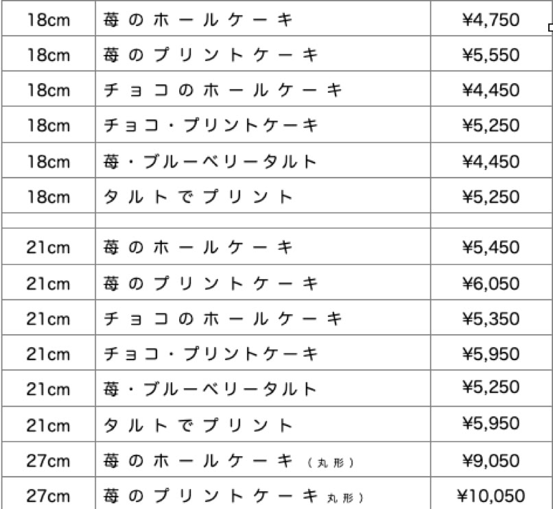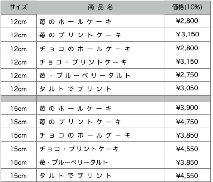 2024/12/19/より一部のケーキ価格変更します。
