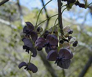 葉山で、アケビの花が咲いていました。