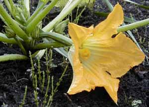 花壇に植えたズッキーニとカボチャの花が咲きました。