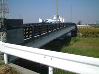 今度は国道を横切るのですが、妙に天井の低い地下道(写真左)を使います。 東海道はやがて、三河と尾張の国境に流れる境川にさしかかります。川には境橋が架かり、橋の向こう側は尾張の国です。 晴天の中、境橋を渡り、いよいよ尾張の国に入りました。 |