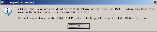 8)ステップ2)でexportしたADIFファイルをimportします。この時のエラーはBAD.adiとしてlogger32のフォルダに書かれますが、その原因の多くはstateとcountryの記述の間違いに起因します。ヘルプのADIF2 compatibilityの項を参考にして修正します。修正したらBAD.adiのファイル名を変更して再度importします。