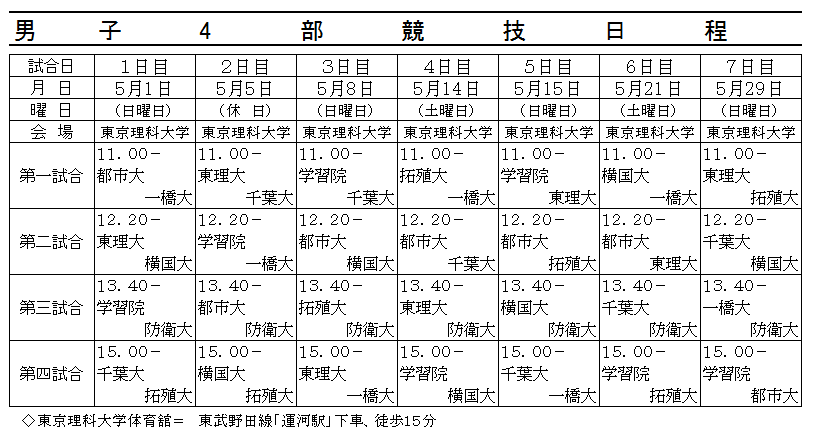 2011年関東学生ハンドボール連盟春季リーグ戦日程表