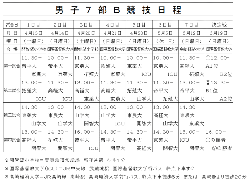 2019年関東学生ハンドボール連盟春季リーグ戦日程表