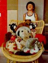 みんなとわたし どうしてこんなに沢山いるの? 私って、浮気者かしらん?? コアラ君の隣のたぬきさんが『おまるちゃん』 まだ、川に落ちる前の 元気な頃のおまるちゃんです。 |