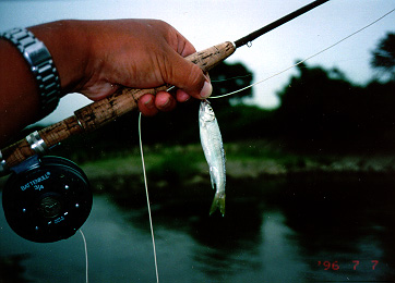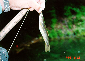 OIKAWA (12.5 cm male) with midge pupa #24, DT3F and 7X tippet. Water temperature: 22 degrees centigrade.