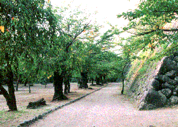 本丸の裏にあります。 藩主や士族が一緒になって乗馬を競った場所と思われます。 今のような、「周遊コース」ではなく、ただ「往復するだけコース」がとられていました。 こうした「往復だけのコース」の馬場を当時は「鉄砲馬場」と呼んでいました。 尚、馬場の一角に「藤村記念館」で紹介した「詩碑」があります。