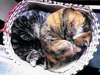丸くなる猫と、炬燵でくつろぐお座敷犬。(^^;