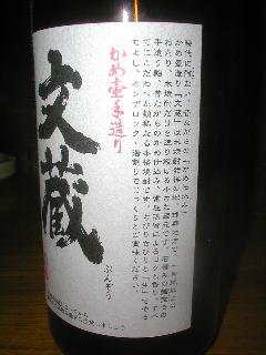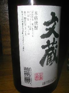 −ラベルの紹介文章− 現在に阿 (おもね)ない、昔ながらの「かめ仕込み」かめ壷造り「文蔵」は米焼酎発祥の地、球磨地方で、一世紀以上にわたり、米焼酎だけを造り続ける小さな蔵元です。石積みの麹室での手造り麹、昔ながらのかめ仕込み、常圧蒸留によるコクと香り。すべてにこだわった類稀なる本格焼酎です。ちびりちびりと「生」でやるもよし、オンザロック・湯割りでじっくりとご賞味下さい。 |