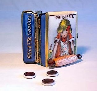 | ピンローラーが立体的になっているのが 面白いところですね。 本の背表紙には 「RECETTE COOKIES」 女の子のエプロンの柄も可愛い。 |