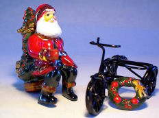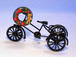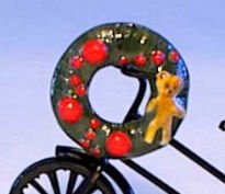 サンタと自転車とリースの3点セットという ちょっと珍しいタイプです。 自転車は前輪がちゃんと回るんです! リースにはちいちゃなテディがくっついてるよ。 |