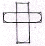 上の図をもとにして目鼻口をいれて出来上がり。立体十字は薄く描こうね。でないと目をいれにくくなるから。