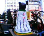 ←渋谷 ハチ公、選挙ポスター巻かれてPR役。