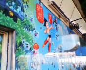 ↑馬場の駅前 壁画